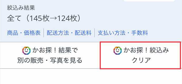かお探!絞込みクリア」を押すと、絞込みが解除されます。